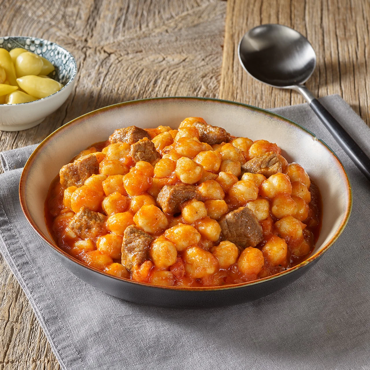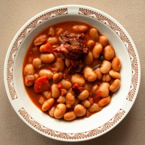 Classic Turkish white beans cooked with meat, a staple comfort dish.Chickpeas with Meat (Etli Nohut)